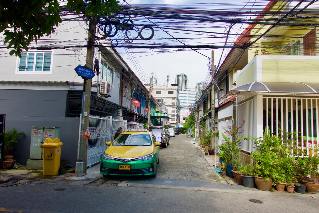 Vi var å hentet en Apple skjerm i ett koselig villastrøk sentralt i Bangkok, og der kunne vi få leid ett slik town house leilighet på 2 etasjer som bildene viser. Kjempekoselig strøk og 370 meter ut til en av hovedveiene i sentrum. Der kunne vi få leid en leilighet for 10.000,- og 12.000,- baht i måneden.