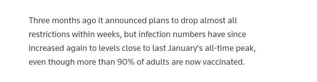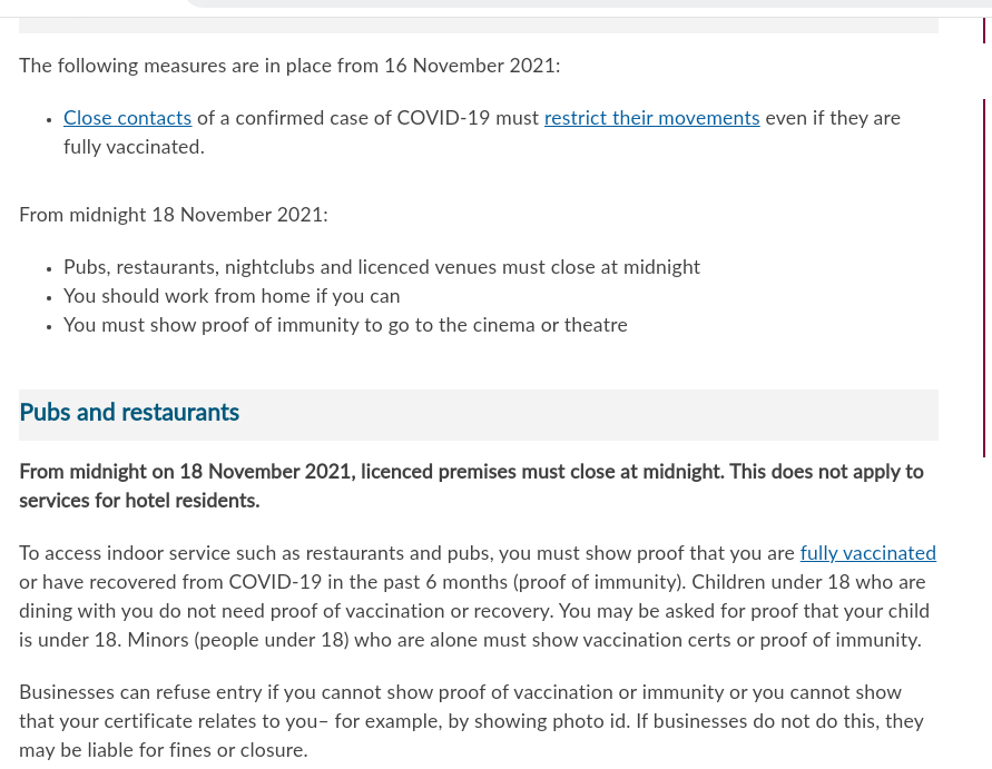 Skulle med på ovenstående. Irland strammer inn . Hjemmekarantene 5 dager for vaksinerte, og motsatt oss som kanskje ender med vaksinepass for å slippe restriksjoner i utelivet. Så innfører de restriksjonene i tilegg til vaksinepasset selv maske når du kke sitter ved bordet innendørs.. Samt at 1 person i grupper må legge info til kontaksøkning. Ifølge reuter har de i tillegg over 90 % vaksinert av de voksne.