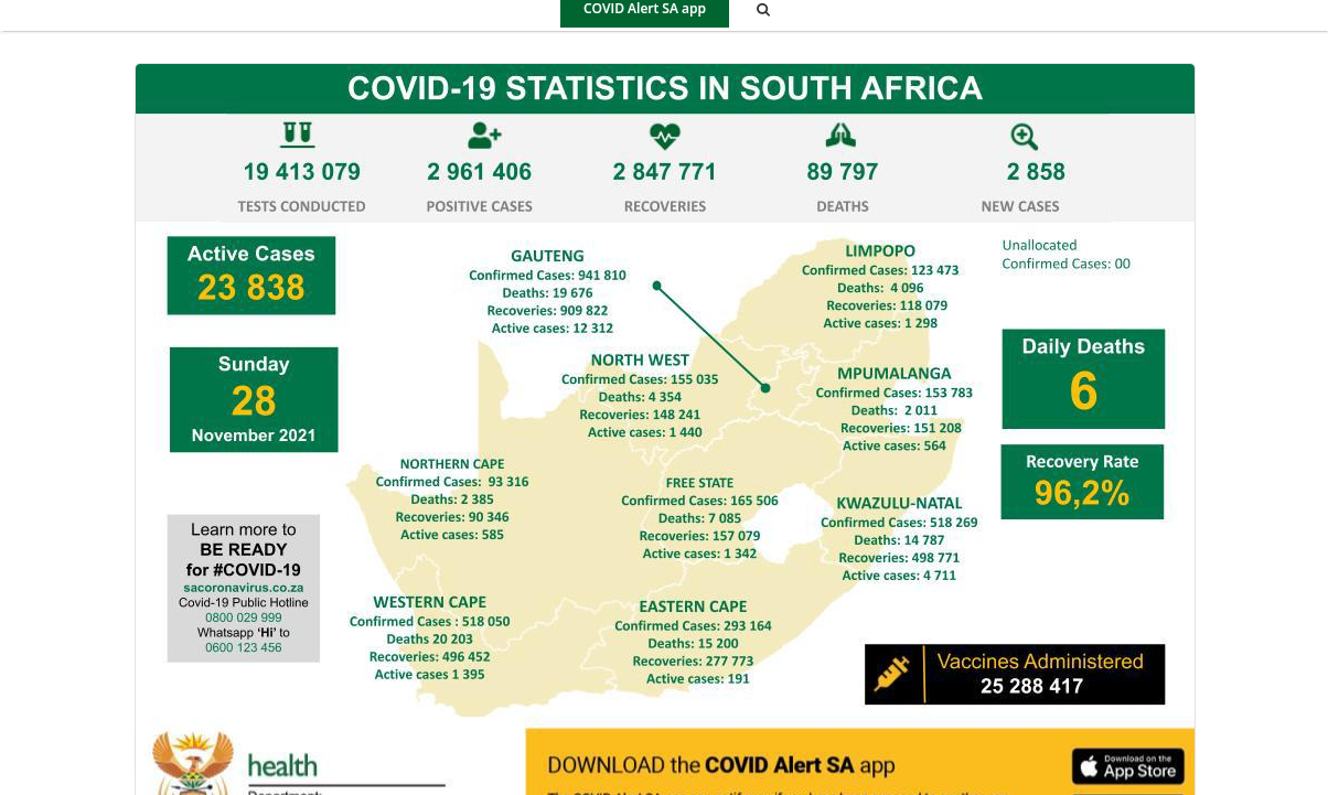 Fra meteren , ntb, og SAfrikas offisielle covidside