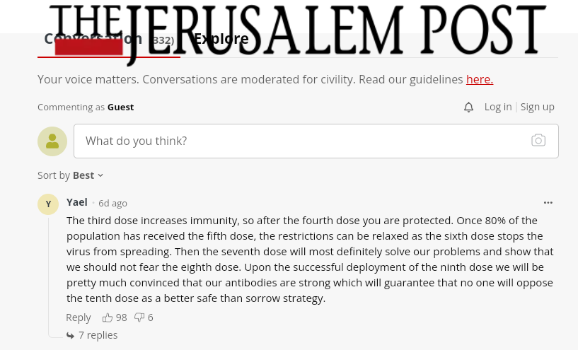 I Israel har de nå vært ute i pressen og fortalt at årsak til 4 dose ikke er vitenskaplig begrunnet men et resultat av fallende imunitet (efekt) av boosterdooser og gjeninfeksjoner., så muligens ren gambling.