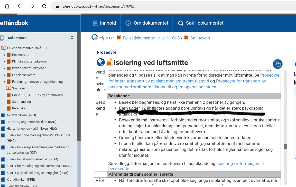 For selv i i Norge vil vi ikke ha , ikke engang på besøk på et smitteisolat på sykehusene.de samme unge. https://ehandboken.ous-hf.no/document/19395