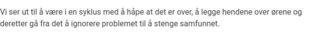 Nå var det advarsler om å ta grep før jul og atter en gang er det fortiet mens det forteller om konsekvenser samt håp og tro.