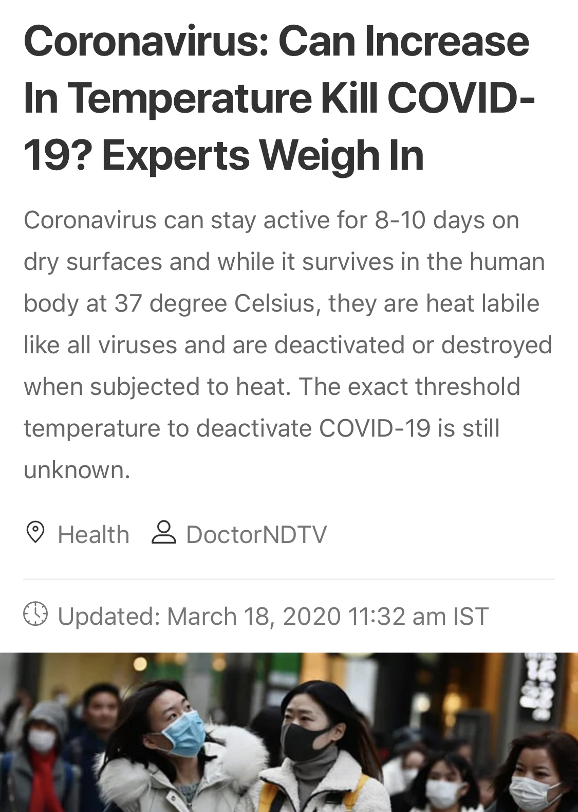 Coronavirus can stay active for 8-10 days on dry surfaces and while it survives in the human body at 37 degree Celsius, they are heat labile like all viruses and are deactivated or destroyed when subjected to heat. The exact threshold temperature to deactivate COVID-19 is still unknown.“