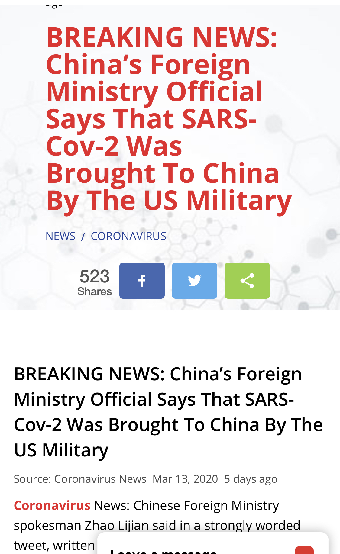 En interessant artikkel for hvorfor Kina retter pekefingeren mot USA angående Corona viruset og spredningen. Jeg var selv ikke klar over at det var 300 amerikanske militære i Wuhan i Oktober i fjor.