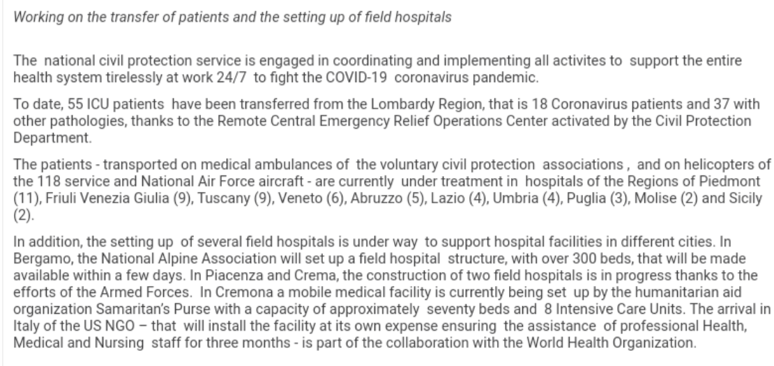 Ser også at pasienter skal flyttes rundt i Italia nå. Kanskje det er like stor kamp internt der som helsebudsjettet mellom komuner her også.