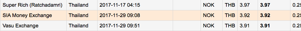 Da hadde Krung Thai bank og UOB Bank beste kurs på TT overføring denne gangen.
