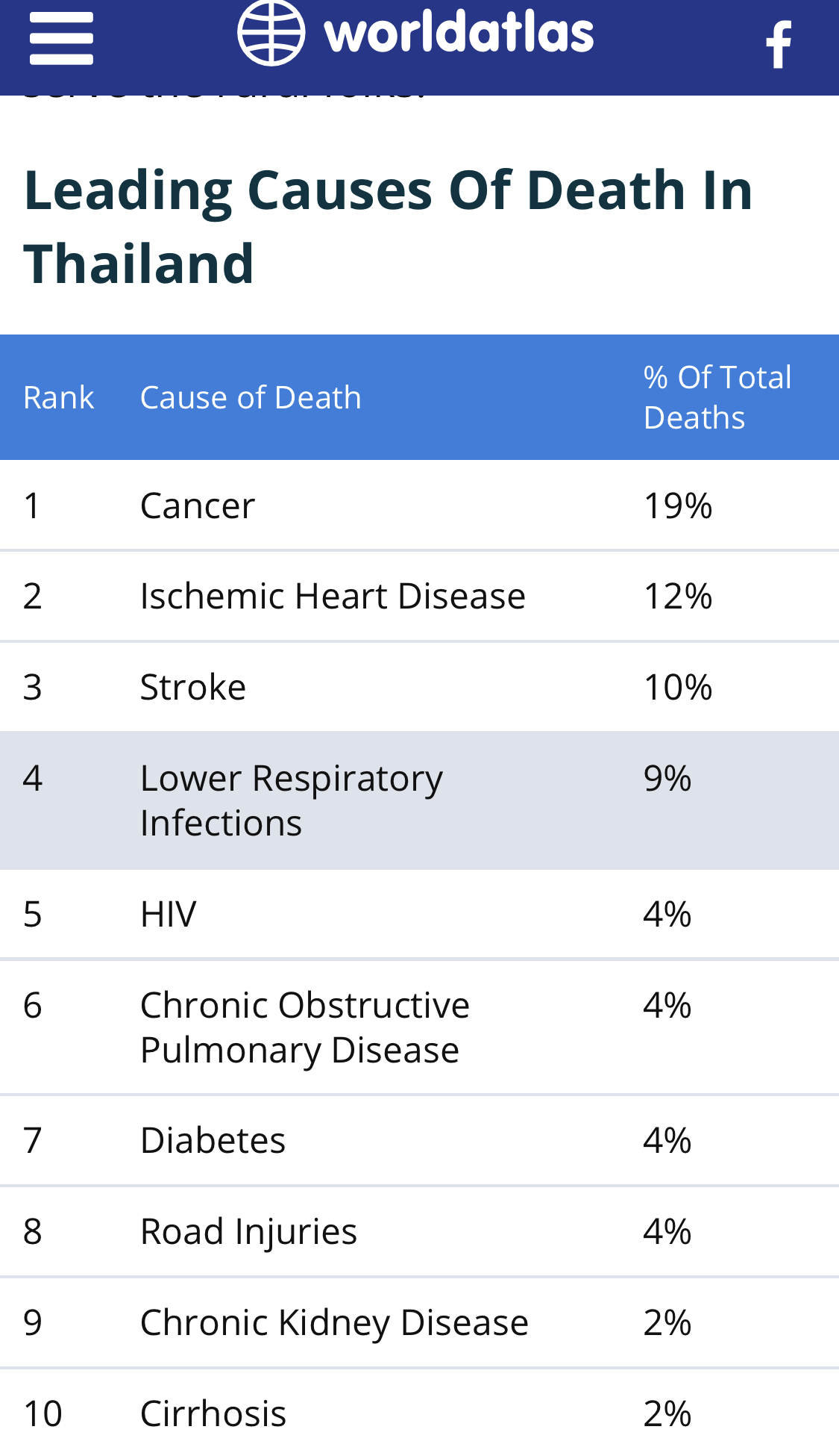 I dag så er det fedme og livevemåte som tar mest liv for tidlig, thaiene blir jo og feitere og feitere noe vi har sett helt tydelig siden 2000, men dette liker ikke thaiene å snakke om eller gjøre noe med.
