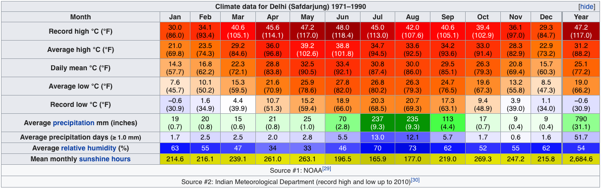 Ser man på værstatistikk på Dehli så er det jo ikke uvanlig med slike høye temperaturer.