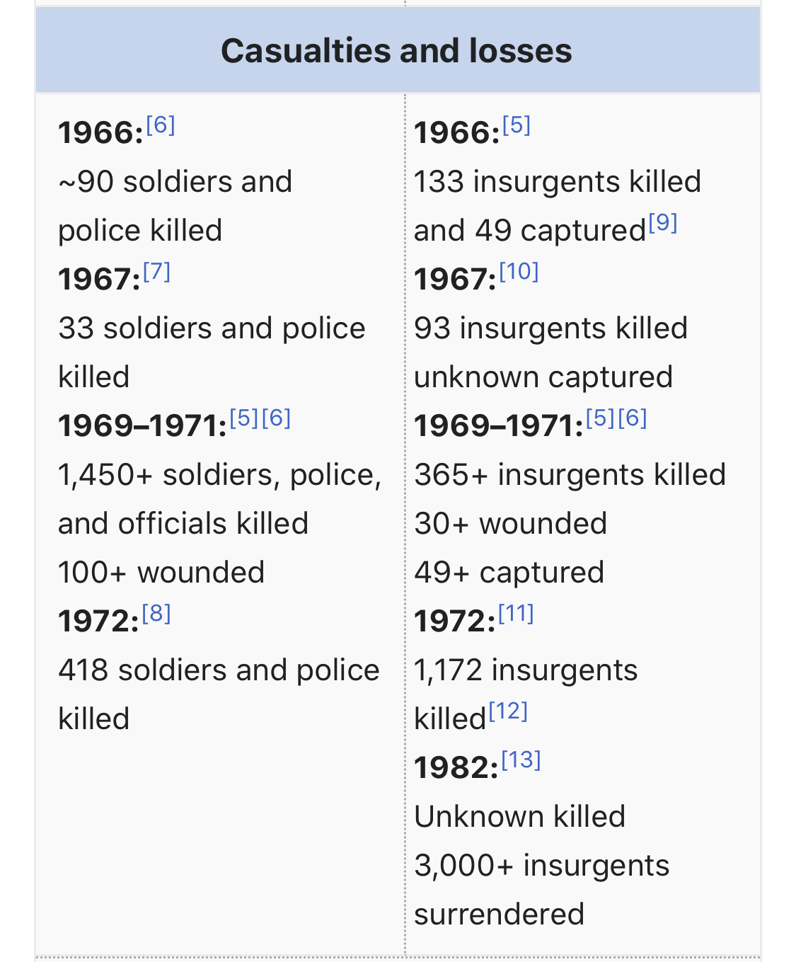 Den thailandske regjeringen satte inn over 12.000 tropper til landets nordlige provinser i januar 1972 og gjennomførte en seks ukers operasjon der over 200 militante ble drept. Regjeringens tap under operasjonen utgjorde 30 soldater drept og 100 såret. [6]