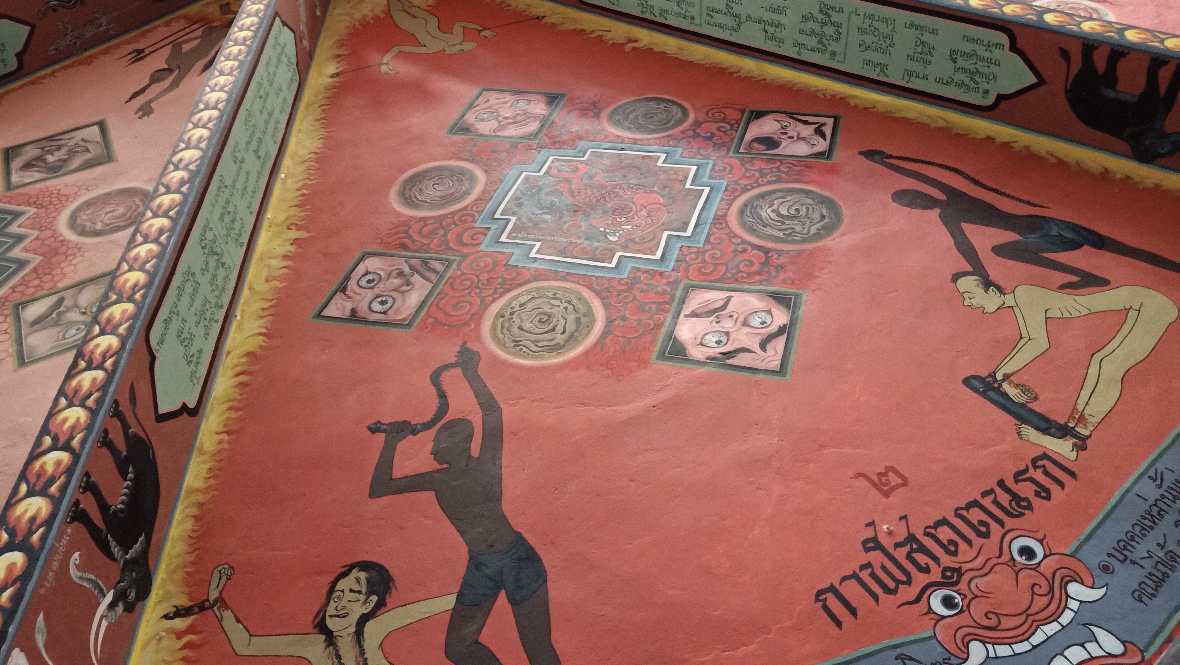 Ref siste lokale tempel vi har vært innom så finnes det et sted med straff også om man ikke er snill, og ikke noe unikt slik sett, da mange templer har disse skildringene til advarsel om hva som venter om man ikke oppfører seg: