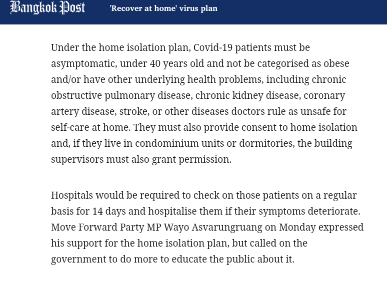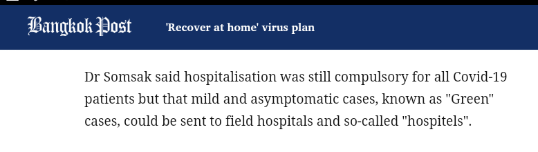 Det kalles asymptomatisk, og det er faktisk svært mange som ikke merker at de har virus i den forstand at de er syke, og det er vel der forskjellen med Thailand ligger, at alle skal på sykehus eller feltsykehus som det så fint heter når sykehusene nå er fyllt opp. Det koster penger med innleggelse, men ingen vet hvor mye, men de som er blitt lagt inn på private sykehus inntil nå, har måtte ut med over 200 000,- baht for eksempelvis 14 dager. Felstsykehus er sagt skal være gratis, men der er det også sprikende informasjon, så det kan forventes alla ASQ opphold 30 000 +riflefish skrev: ↑27 apr 2021, 11:57 hmmmm,